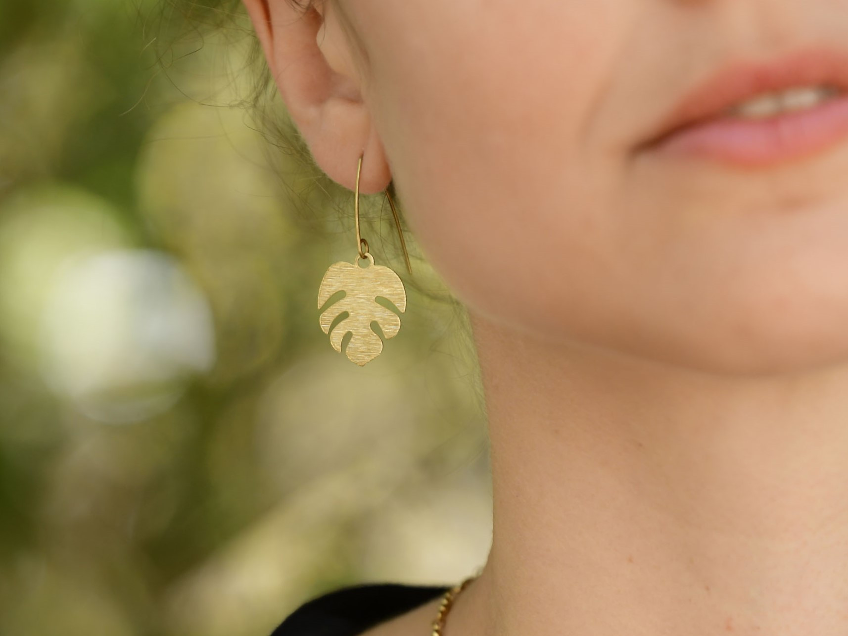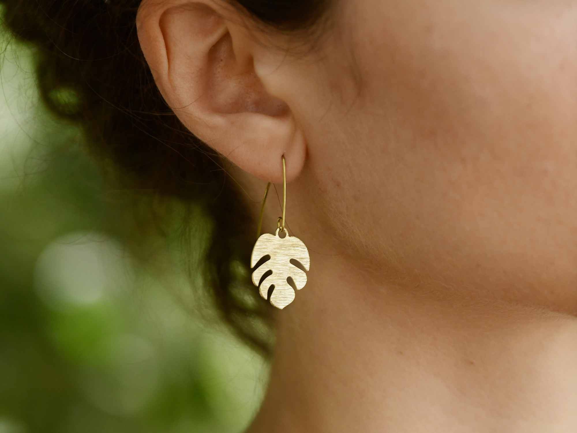 עגילי בראס (פליז) תלויים עם תליון עלה טרופי (מונסטרה). עגילים בעיצוב קליל ומינימליסטי, ועם זאת - בעלי נוכחות. מוסיפים קסם ייחודי לכל הופעה. מושלמים כמתנה לאוהבות הצמחים ויהיו סופר שימושיים גם באוסף העגילים הפרטי שלך!