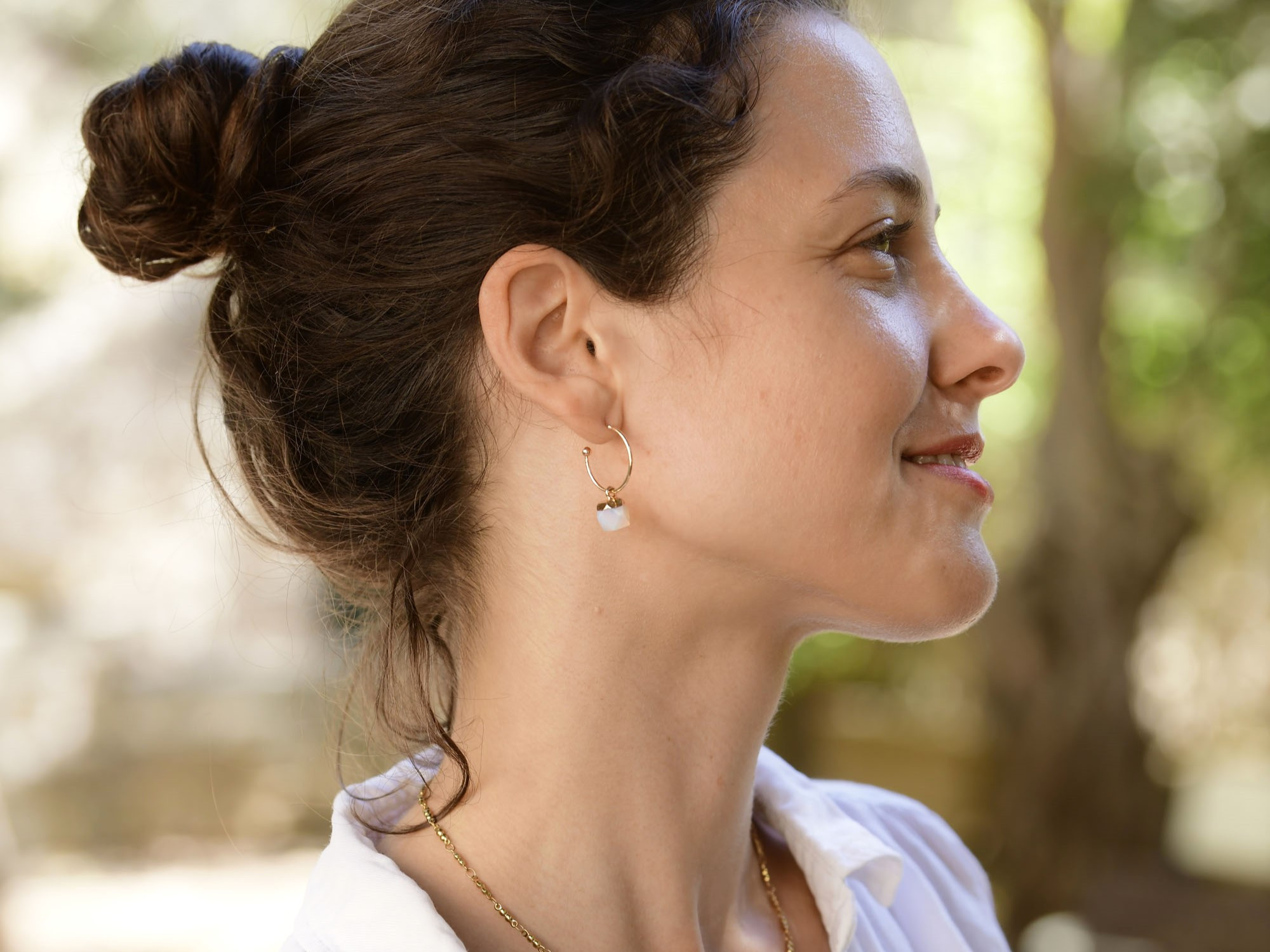 עגילי חירות הם בדיוק כאלה. גודל מושלם שלא מתנגש עם שום דבר, ותליון לבן וקסום שמאיר את הפנים. העגילים שיסגרו לך ת'פינה יום אחרי יום, כל פעם מחדש.