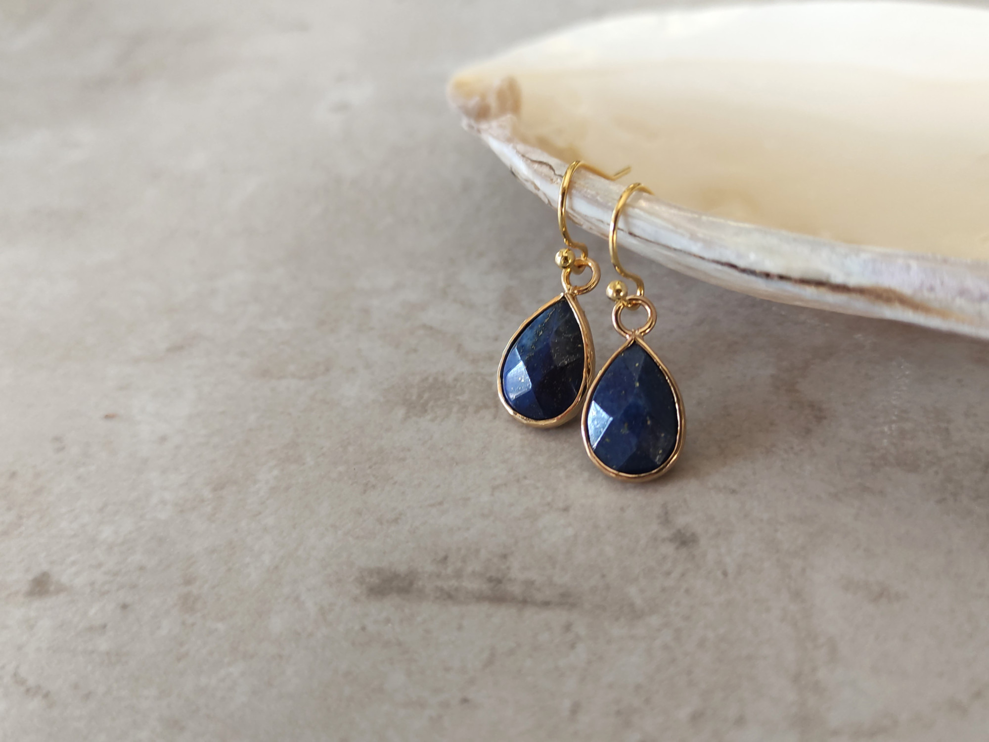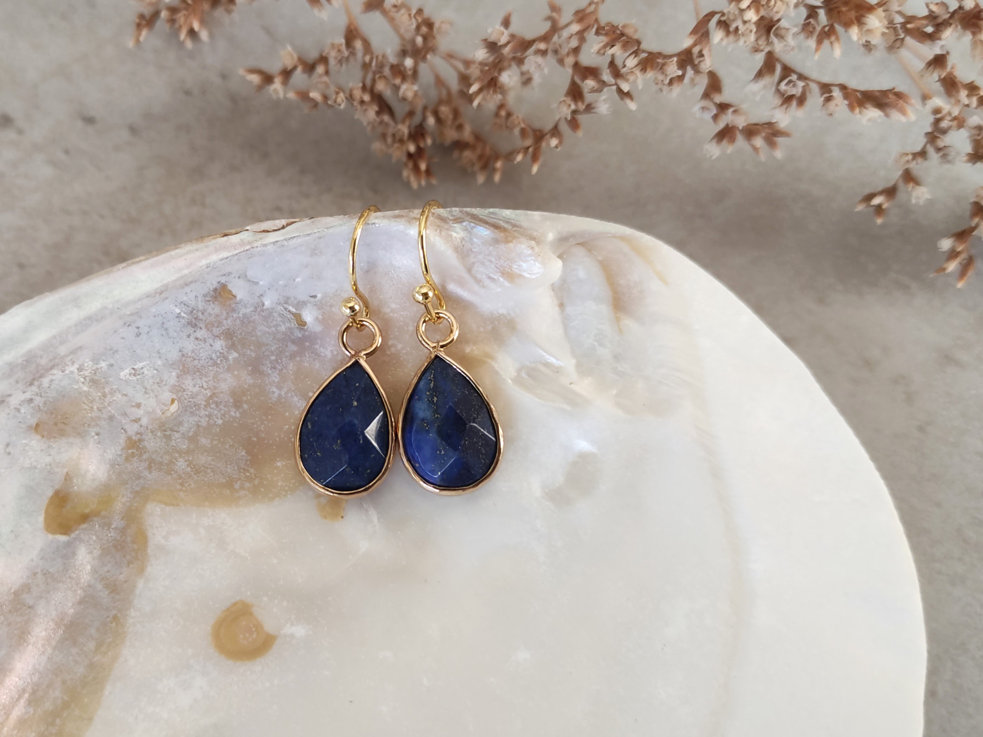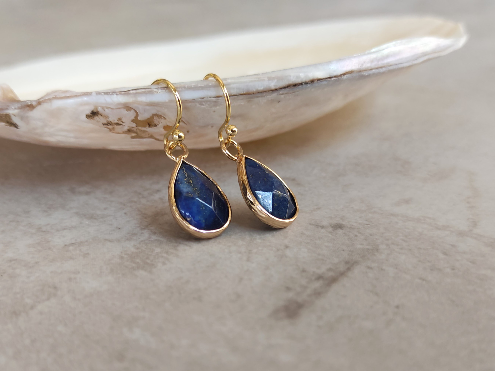 עגילים קטנים ועדינים עם תליון אבן לפיס לזולי בצורת טיפה, בגוון כחול מהפנט. עגילים קלאסיים ולא מתחכמים, שהם פשוט Less is More. מחמיאים לכל אחת ולכל מצב, קלי משקל ונוחים לענידה. מושלמים כמתנה למישהי יקרה, וכמובן גם לעצמך!