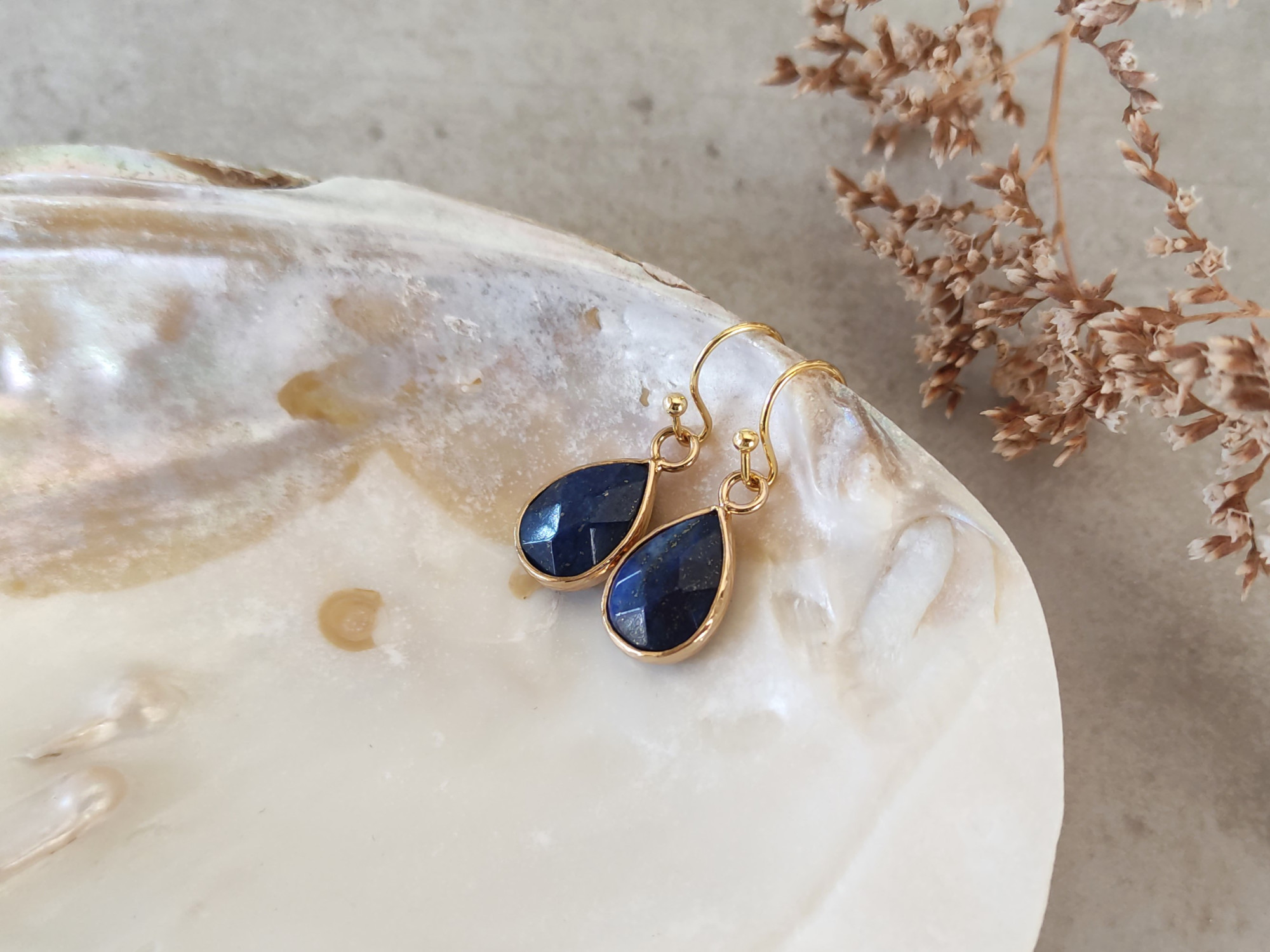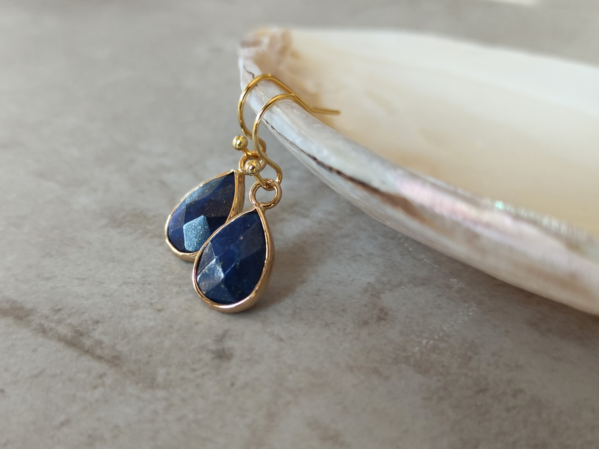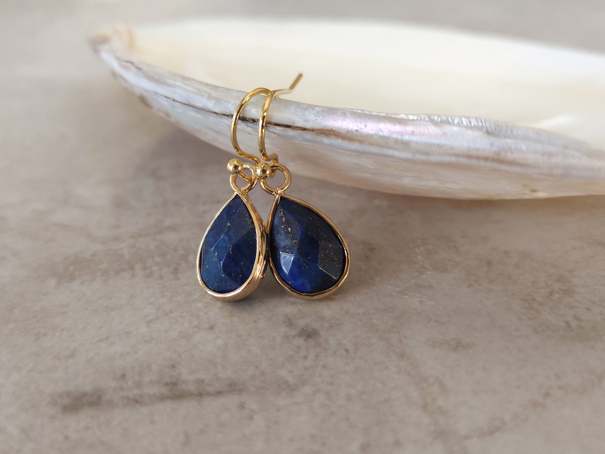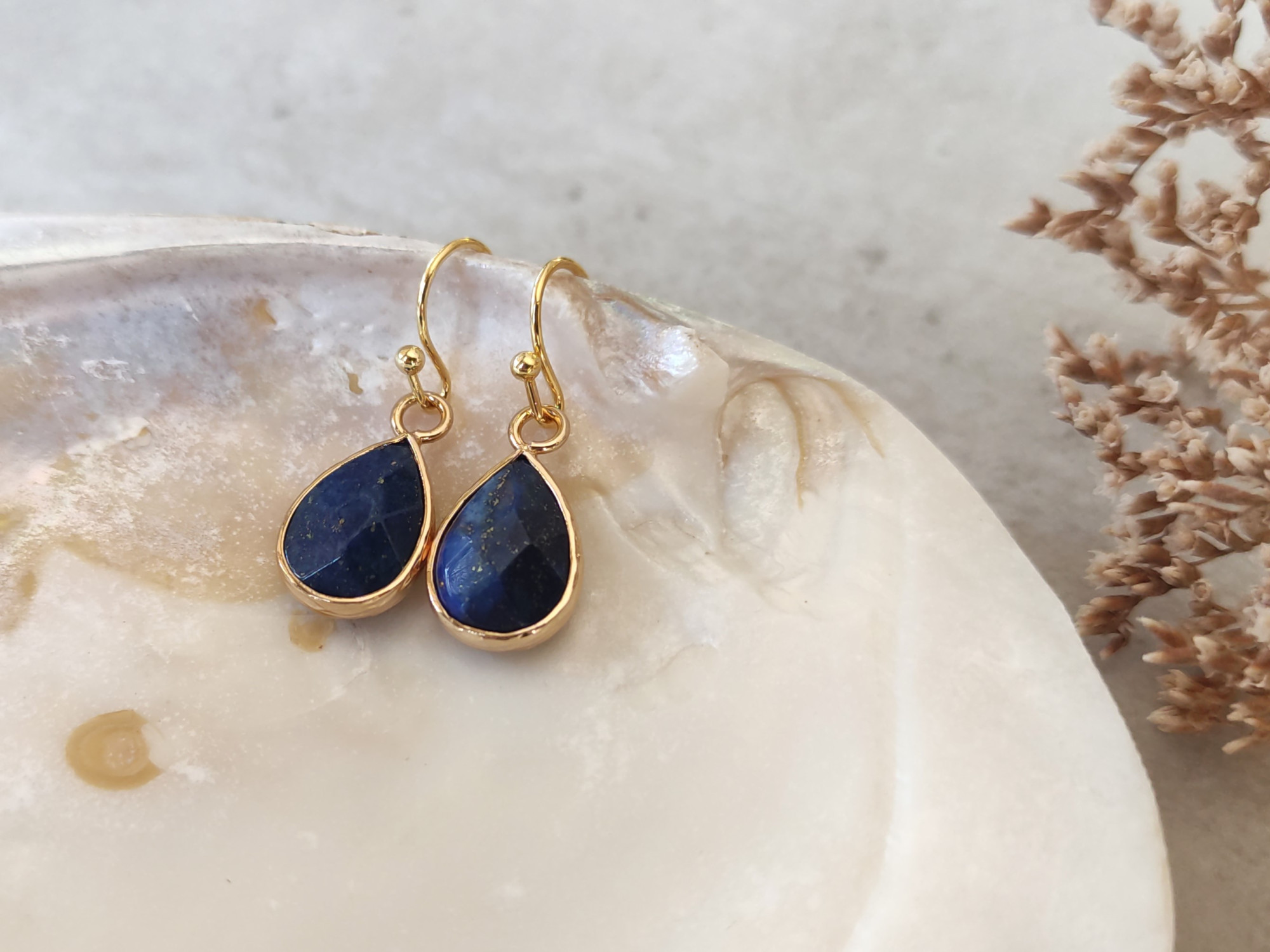 עגילים קטנים ועדינים עם תליון אבן לפיס לזולי בצורת טיפה, בגוון כחול מהפנט. עגילים קלאסיים ולא מתחכמים, שהם פשוט Less is More. מחמיאים לכל אחת ולכל מצב, קלי משקל ונוחים לענידה. מושלמים כמתנה למישהי יקרה, וכמובן גם לעצמך!