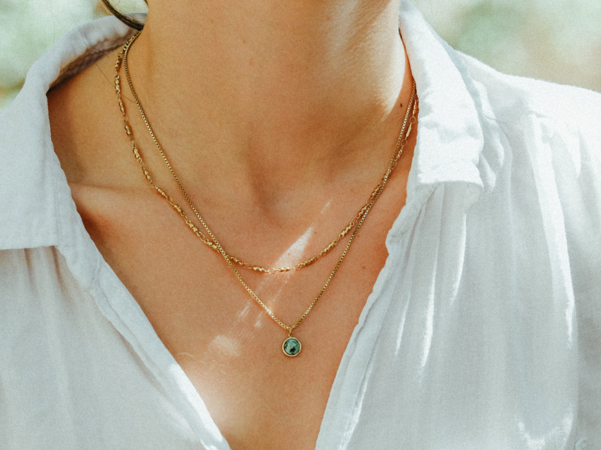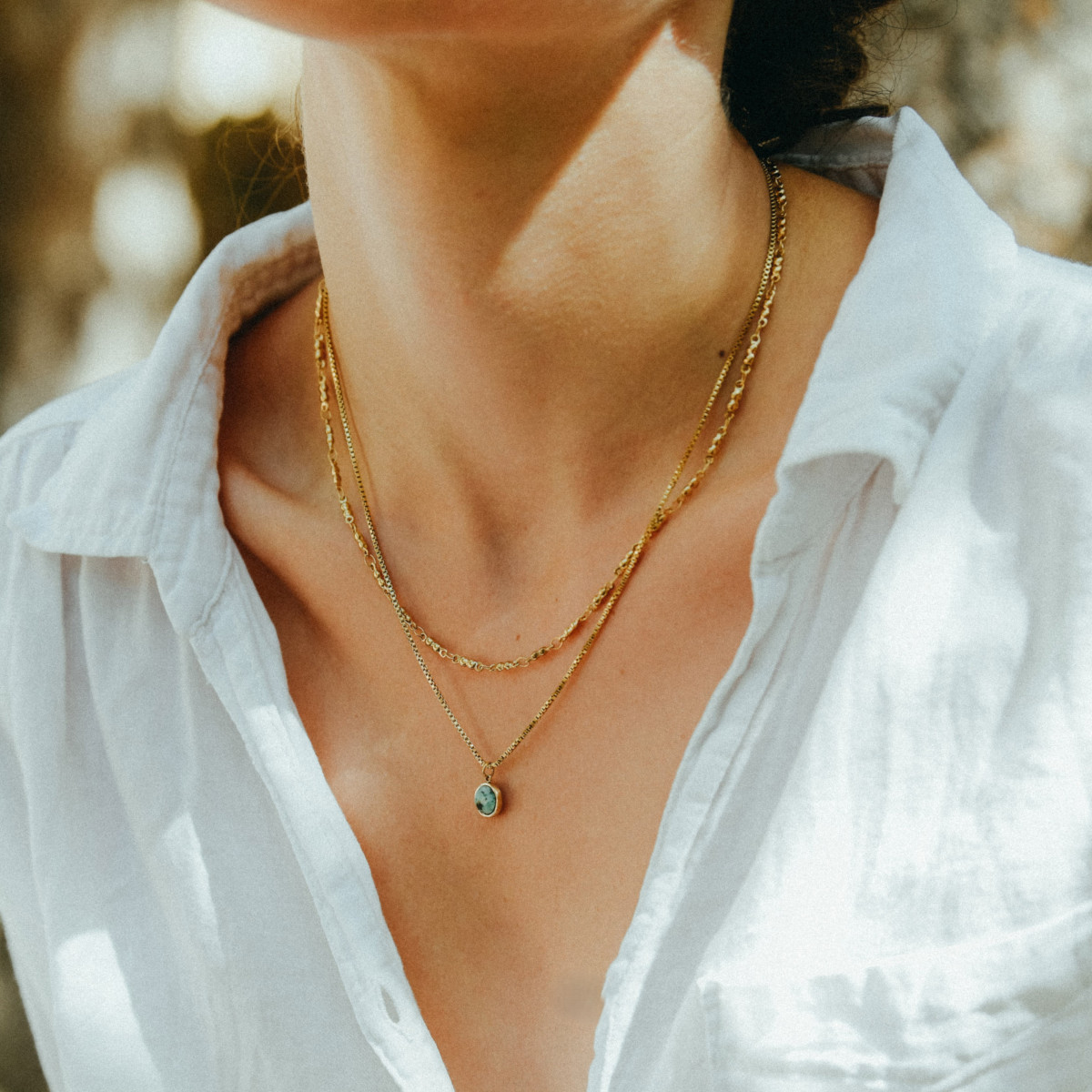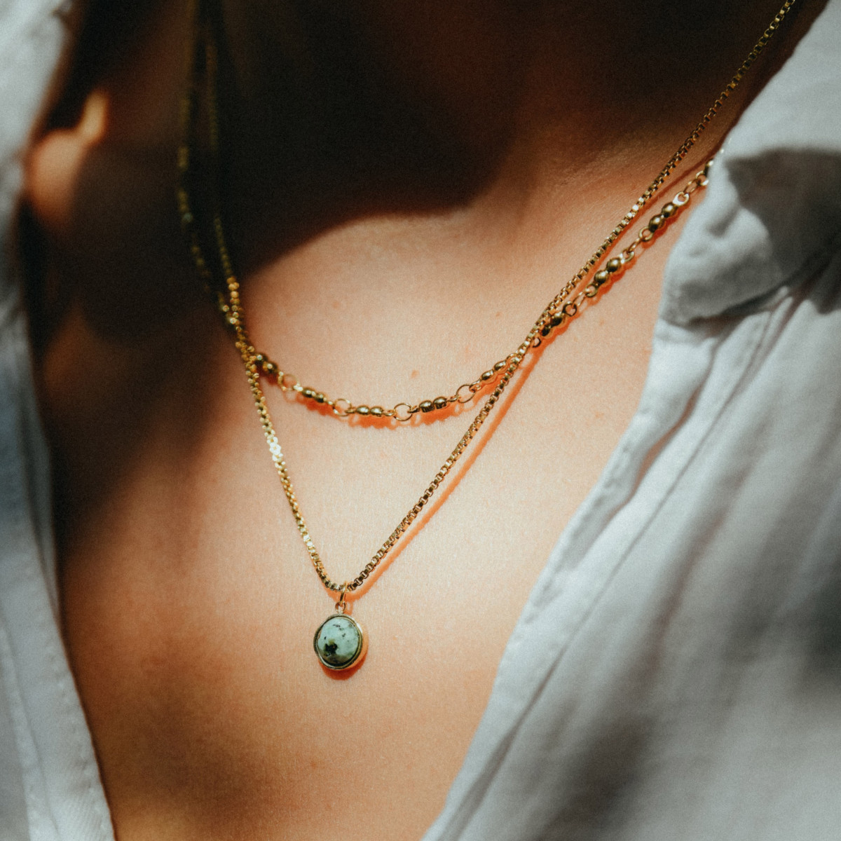 שרשרת עדינה עם תליון קטנטן (ומושלם!) מאבן טורקיז אפריקאי. שרשרת נהדרת, קטנה ועדינה, שמביאה איתה אווירת בוהו ייחודית. שדרוג כיפי וסופר שימושי לאוסף התכשיטים שלך.