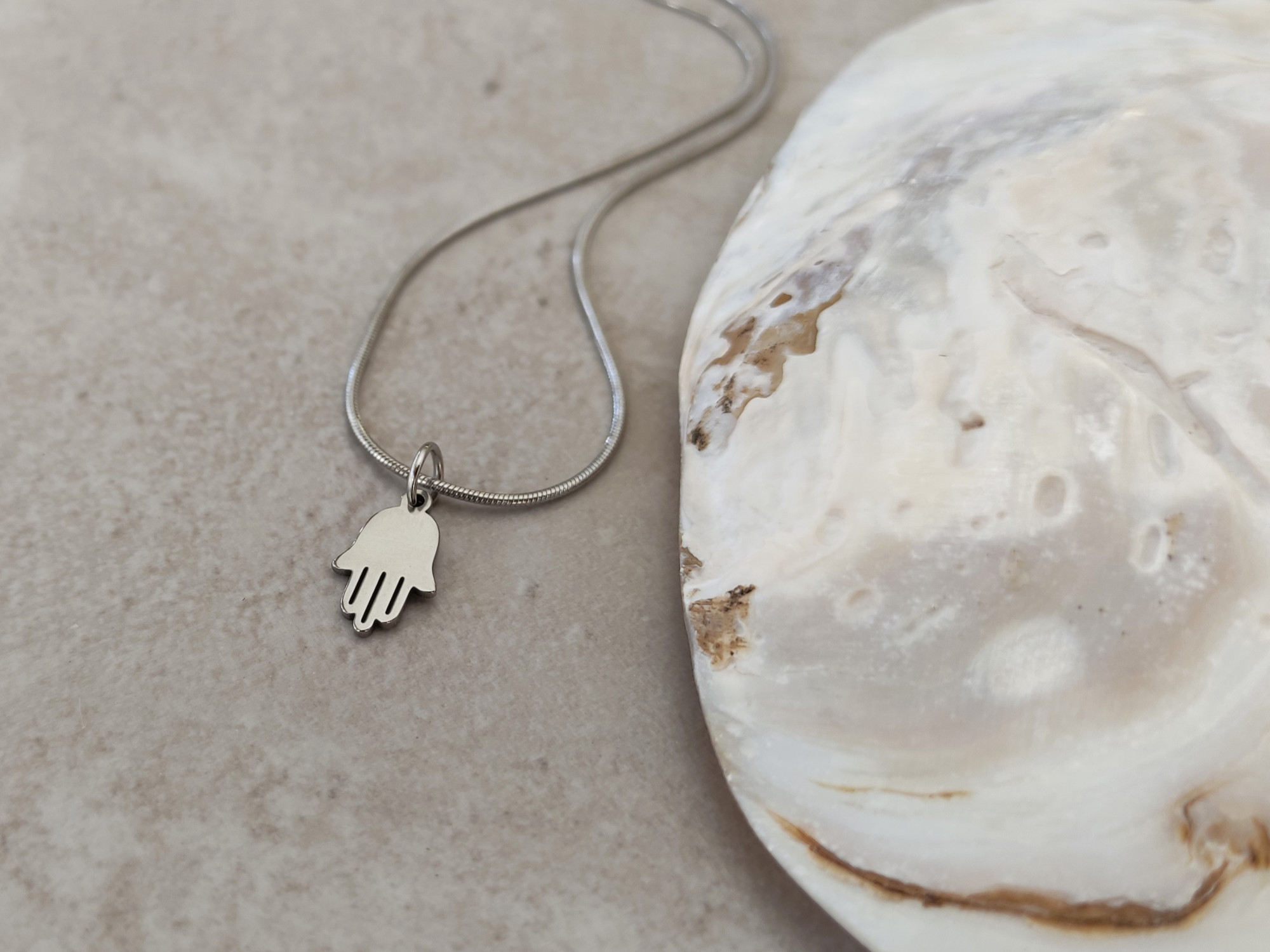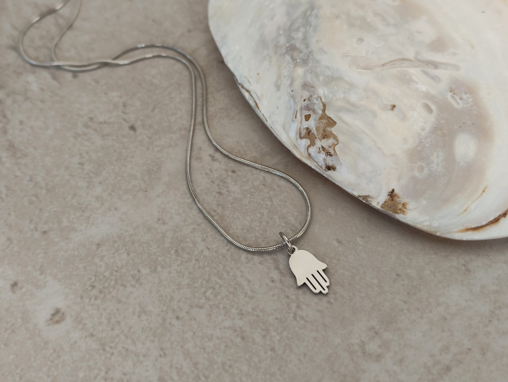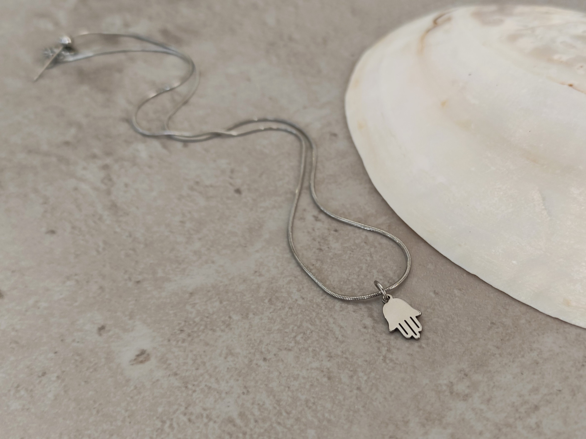 שרשרת כסופה עם תליון חמסה קטנטן בעיצוב נקי ועדין. מושלמת כמתנה בעלת משמעות, למישהי יקרה או לעצמך.