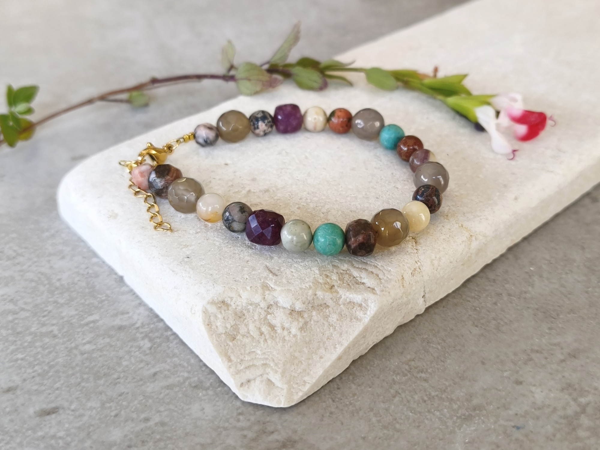 חרוזים: מגוון אבנים טבעיות.